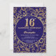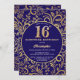 Överraskad 16:e födelsedag, blå och Guld Blommigt Inbjudningar