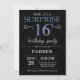 Överraskad 16:e födelsedagsinbjudan med svart och blå Glitter-bakgrund. Chalkboard. Barns födelsedag. Boy eller Girl Dam Tonåring Teenage Bday Inbjudan. Vilken ålder som helst. Om du vill göra ytterligare anpassningar klickar du på knappen "Anpassa" och användor verktyg som är utformat för att ändra mallen.