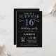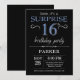 Överraskad 16:e födelsedagsinbjudan svart och blå inbjudningar