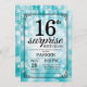 Överraskad 16:e födelsedagsinbjudan Teal Glitter Inbjudningar