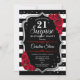 Överraskad 21:a födelsedagsinbjudan. Feminsvart, vit, röd design med faux glitter silver. Innehåller svart och vitt rand, röd ros, skript och konetti. Perfekt för ett elegant födelsedagsfest. Kan vara personlig att visa vilken ålder som helst. Berätta om du behöver anpassa dig ytterligare.