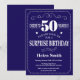 Överraskad 50:e födelsedag, blå och vit inbjudningar