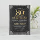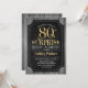 Rustic Surprise 80:e födelsedagsfirandeinbjudan. Elegant i svart, faux glitter guld och grått wood mönster. Elegantens skriptteckensnitt för funktioner. Berätta om du behöver anpassa dig ytterligare.