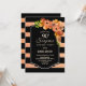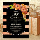 Svarta och korallfaux glitter stripe blommigt överraskar 90:e födelsedagsfest inbjudan.