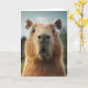 En mycket detaljerad, komisk närbild av en kapybara med brett, uttrycksfullt ögon, skapande ett superskoj och ett häpnadsväckande uttryck.