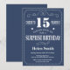Överraskad 15:e födelsedagsinbjudan Blue and White Typography. Blåbakgrund. Barns födelsedag. Male Manar eller Women Birthday. Kids Boy eller Girl Dam Tonåring Teenage Bday Inbjudan. 13:e 15:e 16:e 18:e 20:e 30:e 40:e 60:e 70:e 80:e 90:e 100:e. Vilken ålder som helst. Om du vill göra ytterligare anpassningar klickar du på knappen "Anpassa" och användor verktyg som är utformat för att ändra mallen.