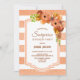 Apricot faux glitter stripe blommigt födelsedagsfest inbjudan.