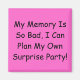 Minnet är så dåligt, jag kan planera min egen överraskning party.