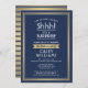 Hh! Kan du behålla en hemlighet? Familjen Inbjudan och vänner till en elegant och en spännande överraskning för pension party firande med denna marinblå, vita och faux guld inbjudan. Utformningen har en modern marin och metallisk stil med gräns, snyggt-skriptkalligrafi och vintage-konst dekoinspirerad typografi. Observera att guld är tryckt färg, inte folie. Den här kortmallen har ställts in för en pension, men all text är enkel att anpassa för alla tillfälle, till exempel en födelsedag. Den passar också för en man eller en kvinna.