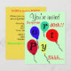 Överraskande 40-årsdag eller ett milstolpe-år. Färgfulla flygballonger i röd orange blå grönt gult. Bakgrund till grönten för söt ljus mynta. Party brev är skrivet över ballonger. Perfekt födelsedagsfest roligt inbjudningar för 40:e eller ANY-milstolpe födelsedag för man eller kvinna! Baksidan har datum- och platsinformation för party på gultens bakgrund. Originalteckningsutkast av TamiraZDesigner.