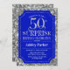 Överraskad 50-dagars firandeinbjudan. Elegantens klassutformning i royal blue och faux glitter silver mönster. Elegantens skriptteckensnitt för funktioner. Berätta om du behöver anpassa dig ytterligare.