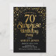Överraskande 70:e Födelsedagsfest inbjudan. Utformning av eleganten i svart och faux glitter guld. Innehåller typsnitt och konfiguration för snyggt av skript. Berätta om du behöver anpassningsbarnas ålder.