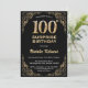 Överraskning 100:e födelsedag Svarta och Guld Glit Inbjudningar