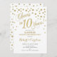 Elegant design i vitt och falskt glitterguld med konfetti och skrivstil. Skål för 10 år! Perfekt för en stilig fest. Meddela mig om du behöver ett anpassat år.