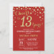 Överraskning 13:e födelsedag Röd och Guld Diamond Inbjudningar