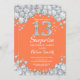 Överraskad 13:e födelsedagen "korall och silver och Silver Rhinestone Diamond Red Background. Elegant Birthday Bash inbjudan. Vuxen födelsedag. Kvinnor födelsedag. Manar födelsedagen.