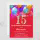 Överraskande 15:e födelsedag: Röda och Guld färgade bubblor och Konfetti-inbjudan. Om du vill göra ytterligare anpassningar klickar du på knappen "Anpassa" och användor verktyg som är utformat för att ändra mallen.
