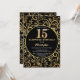 Överraskning 15:e födelsedagen Black and Guld Blom Inbjudningar