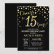 Överraskning 15:e födelsedagen Black och Guld Diam Inbjudningar
