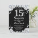 Överraskad 15:e födelsedagsinbjudan. Silver Rhinestone Diamond Chalkboard-bakgrund. Elegant Birthday Bash inbjudan. Svarta och vita. Vuxen födelsedag. Kvinnor födelsedag. Manar födelsedagen.