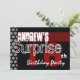 Denna moderna röda, vita och svarta design är ett roligt sätt att inbjuda folk till en ÖVERASKNING 16-års festfirande. All text är helt anpassningsbar. Du kan experimentera med olika papperstyper genom att klicka på fliken "Inbjudan alternativ" i det övre högra hörnet. Denna design är för närvarande presenterad på ett isfärgat metalliskt papper som ger din födelsedagsinbjudan en festlig glans och lyster. Härlig!