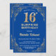 Överraskning 16:e födelsedagen Blue och Guld Glitt Inbjudningar