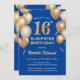 Överraskning 16:e födelsedagsblått och Guld-ballon Inbjudningar