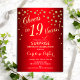 Överraskande 19:e Eleganten i Födelsedagsfest inbjudan i rött med faux glitter guld. Har skript-typsnitt och -konfiguration. Skål för 19 år! Berätta om du behöver en anpassningsbar ålder.