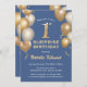 Överraskning 1:a födelsedag Blå och Guld Inbjudningar