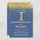 Överraskning 1:a födelsedag Blue och Guld Glitter Inbjudningar