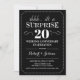 Överraskningsinbjudan till 20-års bröllopsdag. Elegant klassiskt design i svart och vitt. Innehåller elegant scriptfont. Kan anpassas till vilket år som helst! Skicka ett meddelande om du behöver ytterligare anpassning.