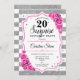 Överraskad 20:e födelsedagsinbjudan. Honinvit, rosa design med faux glitter silver. Funktioner rand, rosa ros, skriptteckensnitt och konetti. Perfekt för ett elegant födelsedagsfest. Kan vara personlig att visa vilken ålder som helst. Berätta om du behöver anpassa dig ytterligare.