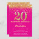Överraskning 20:e födelsedagen Shock rosa och Guld Inbjudningar