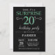 Överraskad 20:e födelsedagsinbjudan med Svarta och Grönt Glitter bakgrund. Chalkboard. Vuxen födelsedag. Manar eller Women Bday Inbjudan. Vilken ålder som helst.