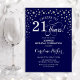 Överraskad inbjudan till 21:a födelsedagspartiet. Elegantens utformning i marinblått och faux glitter silver. Med skriptteckensnitt och diamanter konfigureras. Skål till 21 år! Berätta om du behöver anpassa dig ytterligare.