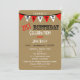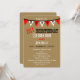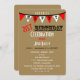 Denna överraskningsinbjudan till 21-årsfirande har ordet överraskning längs toppen i vitt på en brun kartongbakgrund. Ordet lycklig stavas ut i flaggor strax nedanför med orden "21-årsfirande" under flaggorna skrivna i en vintage-typografi. Du kan anpassa alla detaljer för din överraskningsfest på inbjudan för att skapa en bra inbjudan till en 21-årig överraskningsfest. Copyright henishouseofpaper