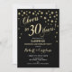 Elegant design i svart och falskt glitterguld med konfetti och skrivstil. Skål för 30 år! Perfekt för en stilig fest. Meddela mig om du behöver ett anpassat år.
