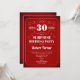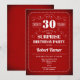 30-års överraskningsfest inbjudan för män eller kvinnor. Elegant retro röd, vit design med typsnittskrift. Skål för 30 år! Kan anpassas till valfri ålder.