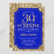 Överraskande inbjudan till Firande i 30års födelsedag. Elegantens klassutformning i royal blue och faux glitter guld mönster. Elegantens skriptteckensnitt för funktioner. Berätta om du behöver anpassa dig ytterligare.
