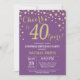Överraskning 40:e födelsedag Lila och Guld Diamond Inbjudningar
