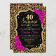 Överraskad 40:e födelsedagsinbjudan. Feminsvart, shock rosa med faux glitter guld. Det finns djur leopard cheetah mönster, fuchsia ro, manus och konetti. Perfekt för ett elegant födelsedagsfest. Kan vara personlig att visa vilken ålder som helst. Berätta om du behöver anpassa dig ytterligare.