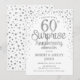 Överraskningsinbjudan till 60-års bröllopsdag. Elegant inbjudningskortdesign i vitt med falskt silvermanuskript och konfetti. Perfekt för en stilig diamantjubileumsfirande