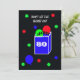Denna roliga överrasknings inbjudan till 80-årsfest har en påse och ballonger och en försiktig påminnelse till gästerna att "Låt inte hemligheten gå ur påsen" trots allt är det en överraskningsfest. Upphovsrätt henishouseofpaper