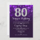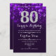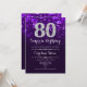 Överraskad 80-dagars inbjudan. lila av elegant med Faux glitter silver. Vuxens födelsedag. Har diamanter, bokeh ljus och skriptteckensnitt. Manar eller kvinnor i inbjudan. Perfekt för en snyggt födelsedagsfest. Berätta om du behöver anpassa dig ytterligare.