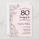 rosa och vit blommigt överraskar 80 födelsedagsfest inbjudan. Elegantens moderna utformning med botaniska accenter och typsnitt för typsnitt. Enkel perfekt för inbjudan-kort i blommigt för en snyggt kvinnlig överraskning i firande. Kan anpassas till vilken ålder som helst. Skrivna Zazzle-inbjudningar eller digital utskrivbar mall för omedelbar nedladdning.