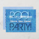 Överrasknings Födelsedags Poolparty Spara datum BLÅ Den här blå och vita poolparty-spara-datum-designen för en sommarfödelsedag är söt och trendig. All text är helt anpassningsbar, så den passar för 21 25 30 40 50 55 60 65 70 75 80 90 eller vilket år du behöver. Lägg till dina födelsedagsdetaljer!