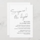 Detta är bröllopsinbjudan för de som rymt, med minimalistisk skriftdesign (Överraskning, vi rymde)
