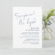 Detta är bröllopsinbjudningskortet, med minimalism / minimalistisk elegant Navy Blue script design (Överraskning, vi rymmer)