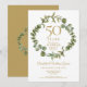 Med en elegant skogsinspirerad grönskekrans är denna snygga botaniska överraskningsfest-inbjudan till 50-års bröllopsdag personliggjord med din speciella information om guldjubileum. Baksidan har en matchande krans som ramar in jubileumsdatum i elegant vit text på guld bakgrund. Designad av Thisisnotme