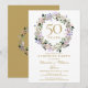 Med en delikat akvarellblomma lila krans, kan denna snygga överraskningsfest 50-års bröllopsdag inbjudan anpassas med din speciella guldfärgade jubileumsinformation. Baksidan har en matchande blomsterkrans som ramar in jubileumsdatumet i elegant vit text på en guldbakgrund. Designad av Thisisnotme©